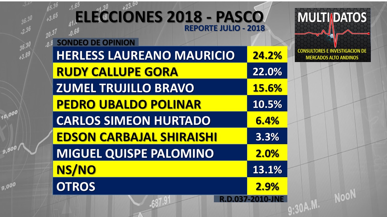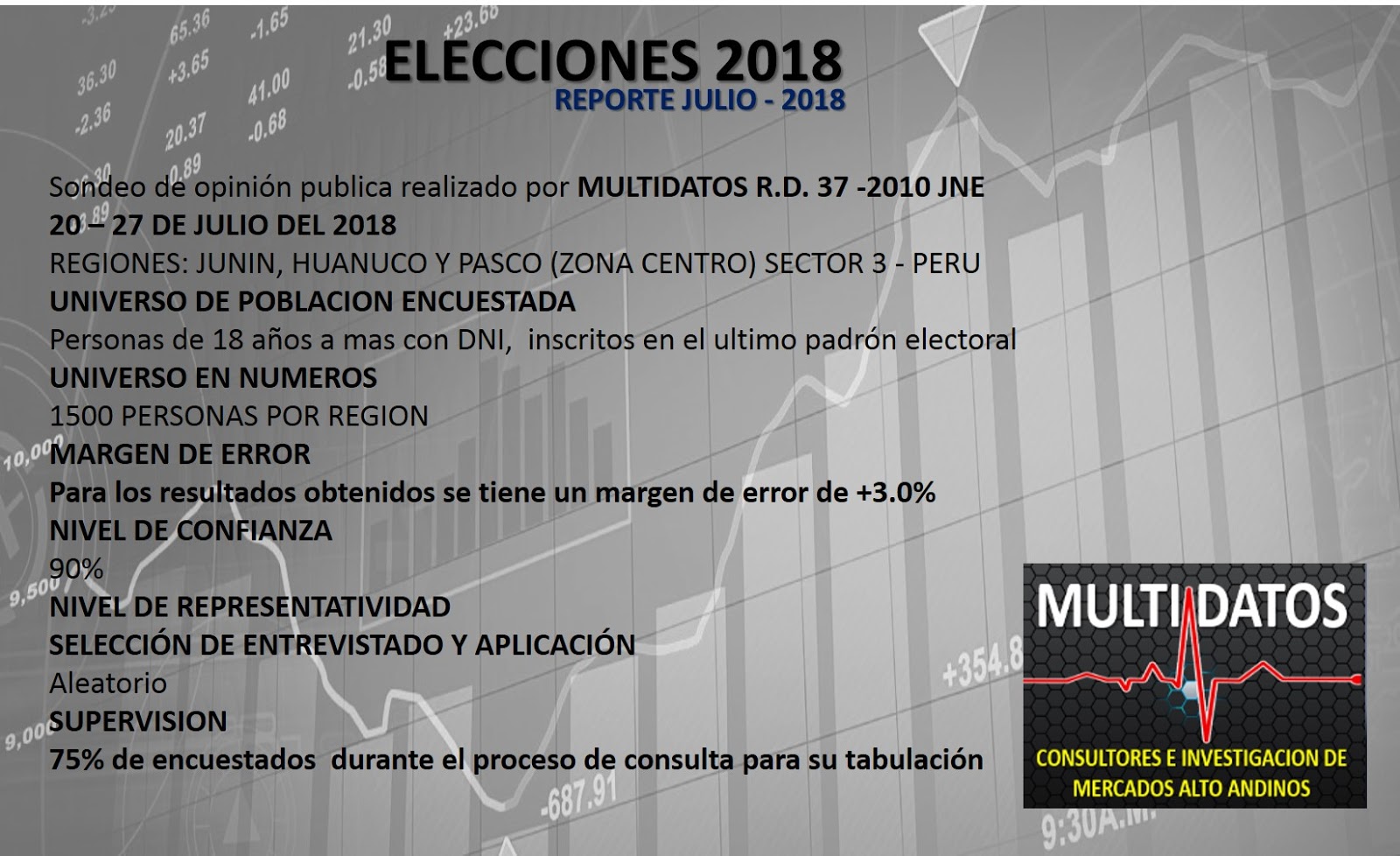Ya habiendo cumplido con la entrega en el norte y sur, ahora hacemos entrega del trabajo en las regiones del centro del país como JUNIN, PASCO Y HUANUCO en donde se pudo conocer a diferencia de nuestra última entrega hace más de tres meses ya la aceptación de candidatos habilitados y reconocidos por el JURADO NACIONAL DE ELECCIONES, teniendo como plus el haber estado ya trabajando en las diversas regiones y sus provincias con mayor posibilidad de tentar y lograr el tan ansiado objetivo.