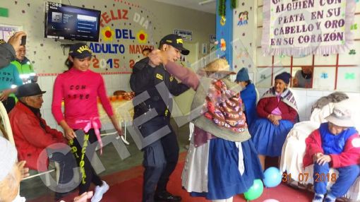 EN CUMPLIMIENTO A LA LABOR SOCIAL EFECTIVOS DE LA COMISARÍA DE PAUCARTAMBO LLEVA ALEGRÍA Y REGALOS A LOS ABUELITOS DEL CIAM