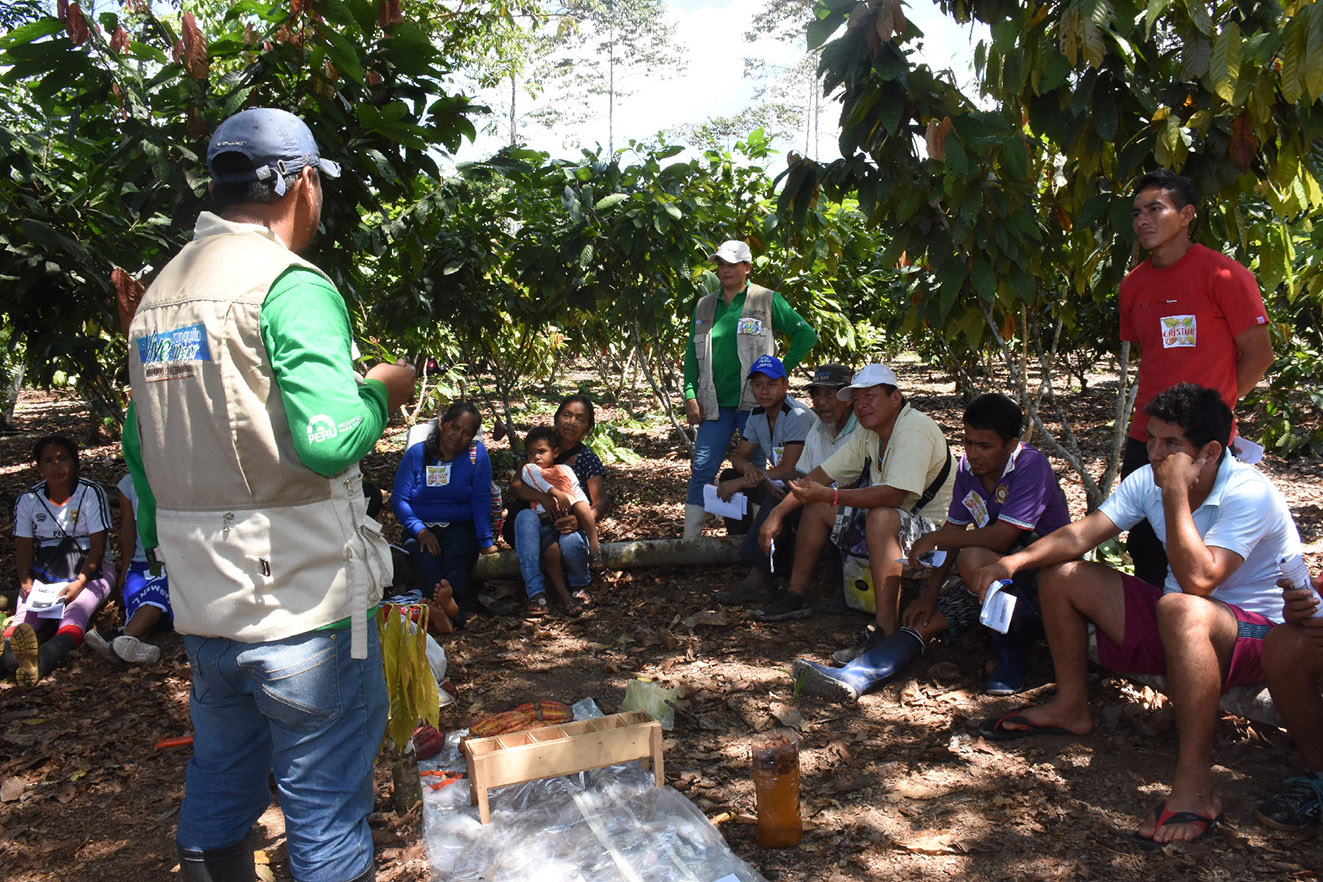 Los agricultores y los especialistas de DEVIDA compartieron sus experiencias en temas relacionadas al cultivo del cacao como manejo de plagas y técnicas de fertilización.