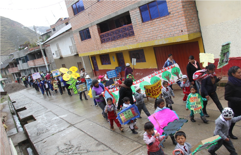 En dicha actividad participaron los efectivos de la Policía Nacional del Perú, jardín de niños “corazón de Jesús”, Instituciones educativas 34039 “Gamaniel Blanco Murillo” y “Apóstol San Pablo”, quienes se concentraron en el frontis de la municipalidad portando pancartas con mensajes alusivos al medio ambiente, donde luego recurrieron las principales calles del distrito.
