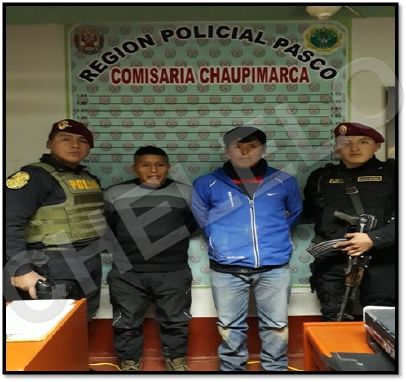 El Alférez PNP Piero Cano Jefe del Escuadrón de Emergencia de la Policía Nacional de Pasco, comunicó que luego de una rápida acción junto a los efectivos del Serenazgo del Municipio Provincial de Pasco, detuvieron a dos sujetos que minutos antes hurtaron mercadería del almacén de la Distribuidora Gonzales; uno de los intervenidos sería familiar de uno de los propietarios.