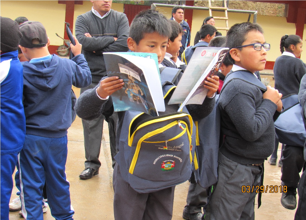 Los primeros beneficiarios de estos kits fueron los alumnos de las Instituciones Educativas “Apóstol San Pablo”, “Gamaniel Blanco Murillo” y “Corazón de Jesús” en la capital del distrito, de la misma manera se entregaron a las instituciones educativas de los centros poblados de Yanapampa, 30 de agosto y Malauchaca.