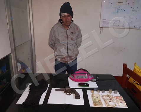 Luego de una alerta ciudadana de un asalto a una bodega, efectivos policiales de la Comisaria de Chaupimarca al mando del Mayor PNP Darwin Flores Cruz, se constituyeron al lugar realizando una persecución lograron intervenir a Nehemías Lara Urbina (39) (Chato Gringo) quien se encontraba con un arma de fuego que minutos antes habría asaltado a una bodega lográndoles sustraer la suma de mil nuevos soles.