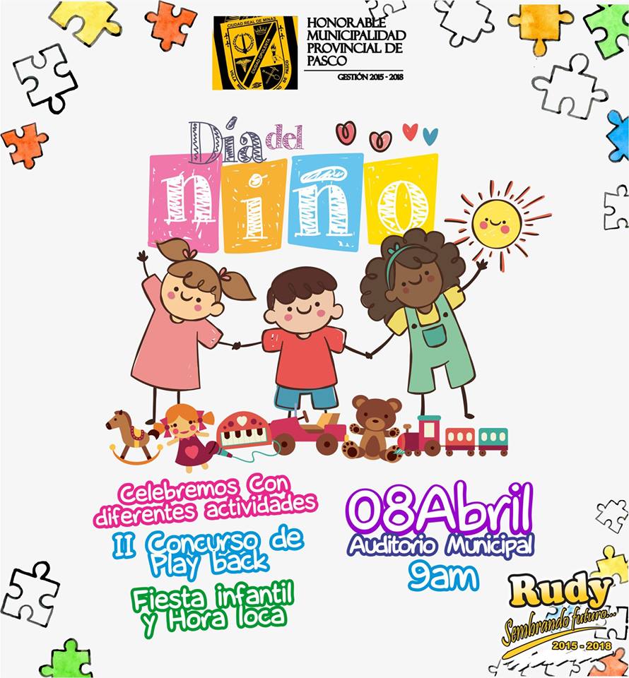 “Un niño es el tesoro más grande del mundo, son el presente y futuro de nuestra sociedad”, por ello nuestra Honorable Municipalidad Provincial de Pasco realizará este domingo 08 de abril un homenaje especial conmemorando un año más el Día del Niño peruano.