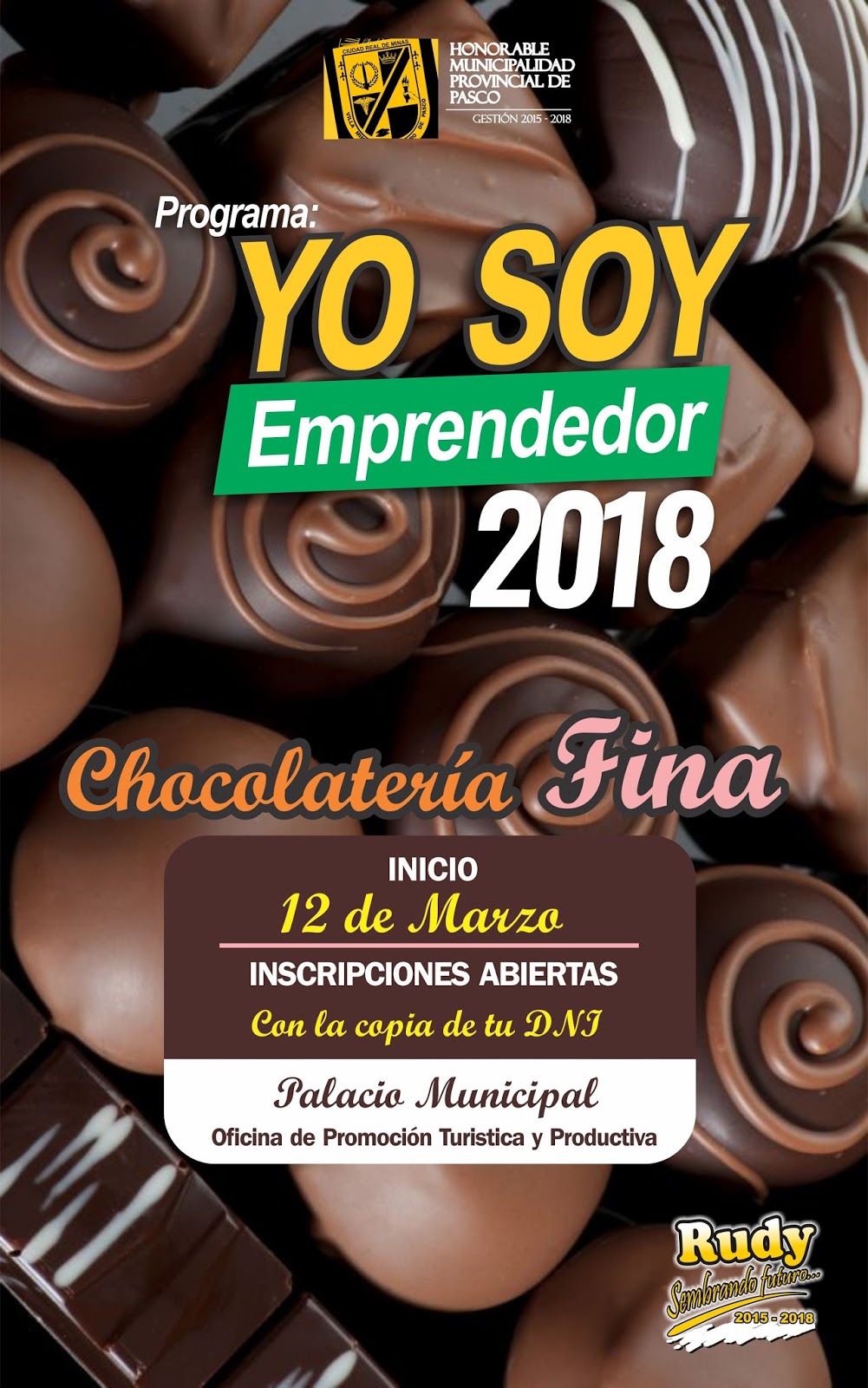 Iniciando el trabajo de fortalecimiento económico para muchos jóvenes emprendedores en la provincia, el alcalde de Pasco, Rudy Callupe Gora, nuevamente dará apertura el programa “Yo Soy Emprendedor 2018”, donde a través de la Oficina de Promoción Turística y Productiva se dictará varios talleres totalmente gratuitos a la población pasqueña.