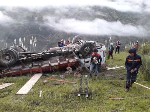 CINCO COMERCIANTES DE PAPA SE SALVAN DE MORIR APLASTADOS LUEGO QUE CAMIÓN DE DESPISTARA Y VOLCARA