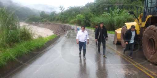 Preocupado por la emergencia que se presenta en la provincia Oxapampa, gobernador regional Pedro Ubaldo Polinar, inspecciona vías de comunicación que fueron perjudicadas por las fuertes precipitaciones pluviales.