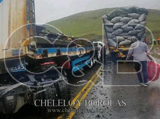 Choque de vehículos en la carretera central, el chofer del tráiler F1G-987 impacto con otro vehículo pesado que llevaba carga de carbón, pero gracias a Dios no se registró daños personales, los dos conductores salieron ilesos pero asustados; el accidente se registró en la carretera central altura del lugar denominado Casa Blanca a dos kilómetros del cruce Yanamate a Huánuco a horas 3 p.m. del sábado 09 de febrero 201.