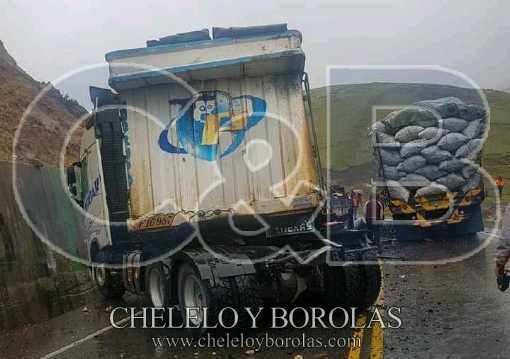 EN OTRO ACCIDENTE POR PISTAS MOJADAS HACE QUE DOS CONDUCTORES DE VEHÍCULOS PESADOS PERDIERON EL CONTROL DE SUS VEHÍCULOS E IMPACTARON