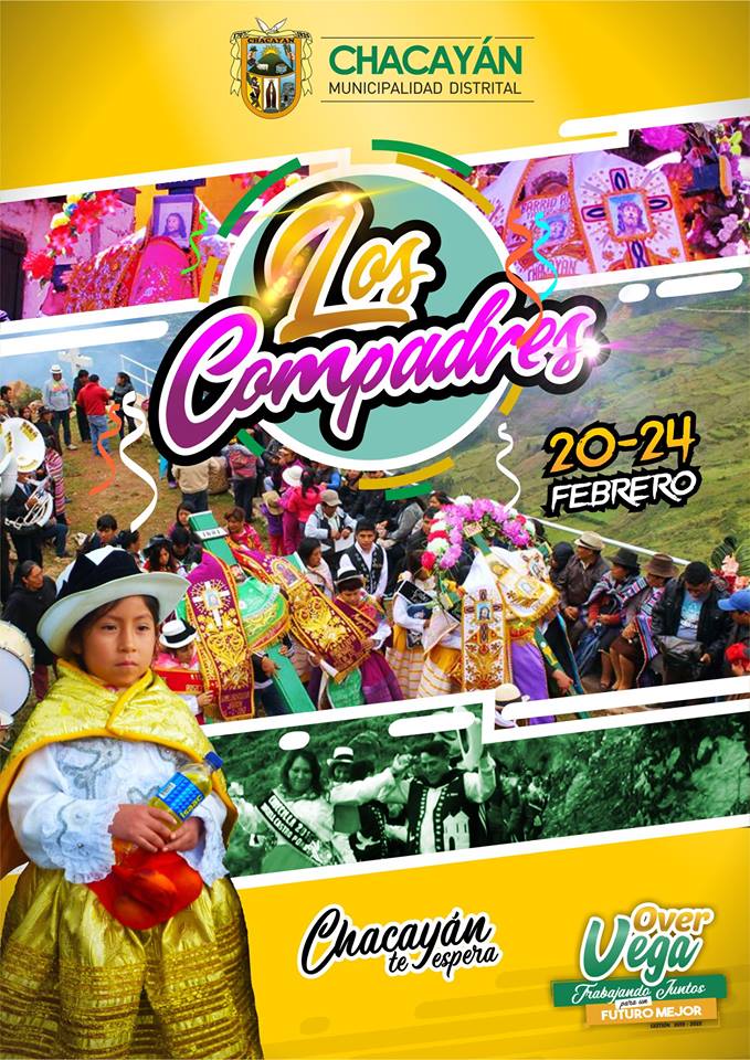 El Alcalde del distrito de Chacayán, Over Vega Prado hace extensivo la invitación a participar de la fiesta más importante de la provincia carrionina “Los Compadres”. Evento que tendrá lugar en la acogedora tierra de Chacayán entre los días 20 al 24 de febrero.