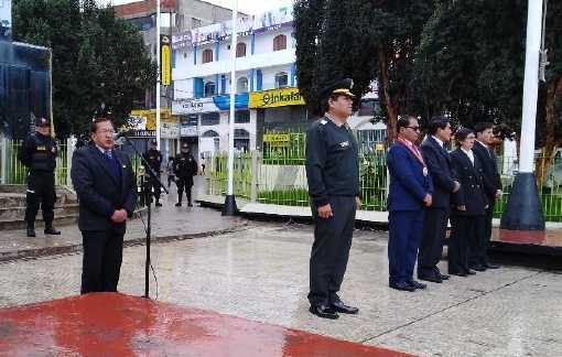 SECRETARIO GENERAL DEL GOREPA, MUNICIPALIDAD PROVINCIAL Y SUBPREFECTURA DE HUAYLLAY REALIZARON IZAMIENTO DE NUESTROS SÍMBOLOS PATRIOS