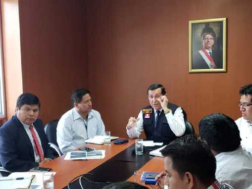 Con el objetivo de coordinar acciones para mitigar los desastres naturales que se producen en la región Pasco, gobernador regional Pedro Ubaldo Polinar acompañado de alcaldes distritales de Villa Rica, Paucar, Santa Ana de Tusi y alcalde de la provincia Daniel Alcides Carrión, sostiene reunión con el Gral. Jorge Chávez Cresta encargado nacional de Defensa Civil.