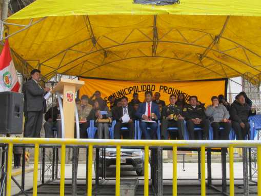 Como es de costumbre en ceremonia especial y en representación del gobernador regional Pedro Ublado Polinar, vicegobernador regional Wilder Robles Rivera acompañado del prefecto regional Jhon Torres Sánchez y representante de la Municipalidad Provincial, realizaron al primer izamiento del pabellón nacional, acto que desarrollará cada domingo en la plaza Daniel Alcides Carrión.