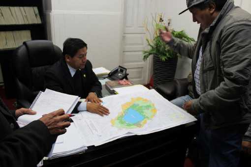 En el despacho de gobernación, la primera autoridad regional, Pedro Ubaldo Polinar, recibió a la comitiva de la Comunidad Campesina de Yurajhuanca, encabezados por su presidente, Deivis Zarate López, quienes mostraron su preocupación por el convenio que permitía pasar tuberías del proyecto integral de agua por sus terrenos.