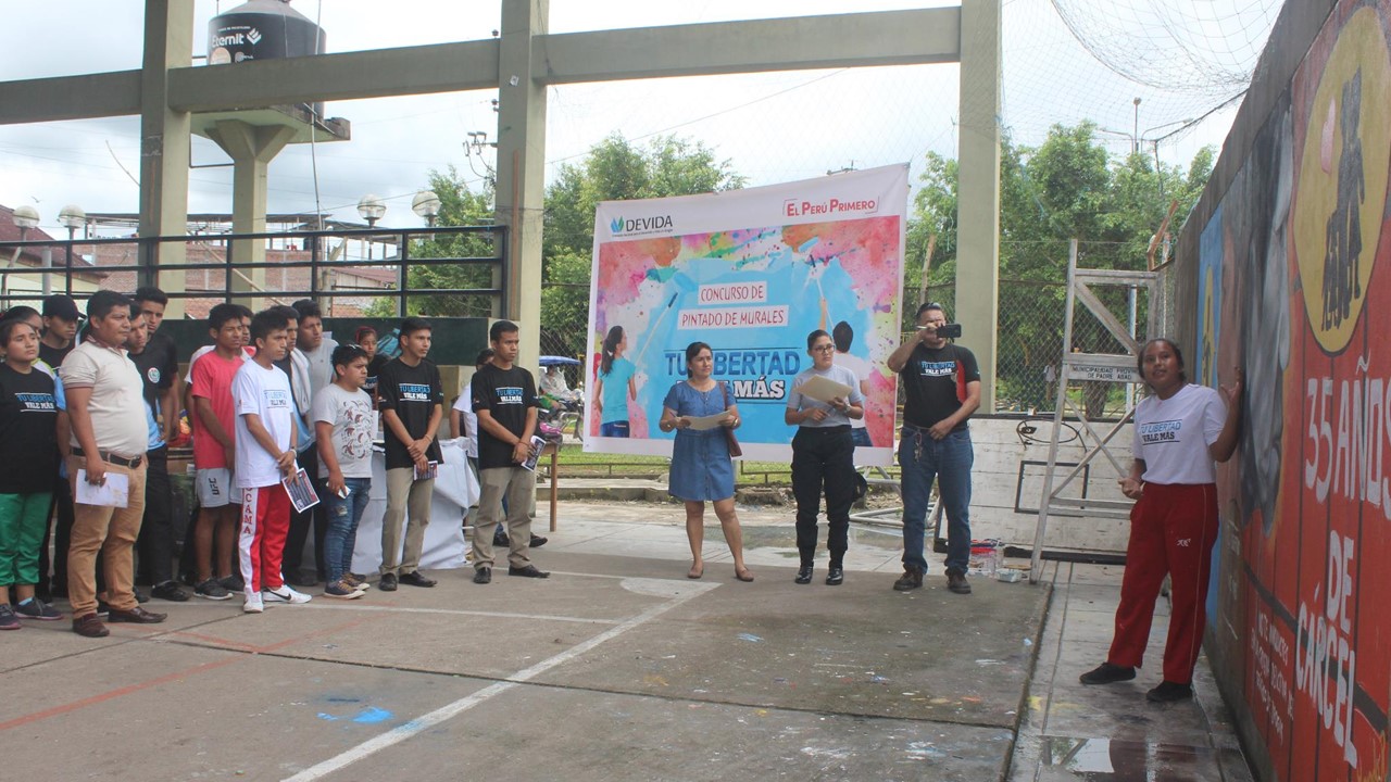 Más de 160 estudiantes crearon mensajes en el marco del concurso de pintado de murales "Tu libertad vale más" organizado por DEVIDA