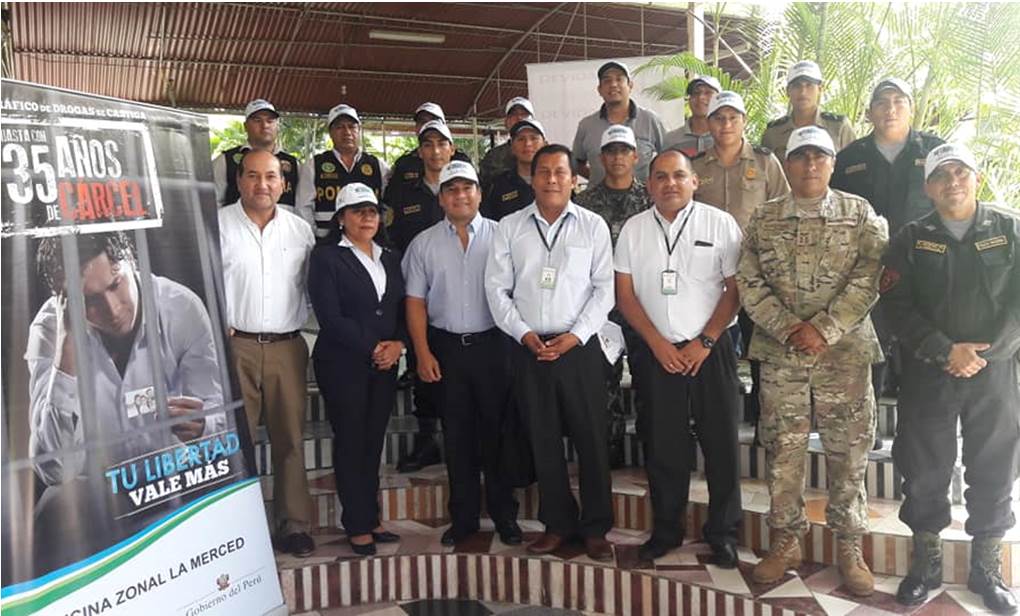 Con la finalidad de frenar la oferta de drogas en la selva central del Perú, la Comisión Nacional para el Desarrollo y Vida sin Drogas (DEVIDA) desarrolló un taller de capacitación a miembros de instituciones involucradas en la lucha contra el Tráfico Ilícito de Drogas (TID), donde también se abordó el tema de reconocimiento de insumos químicos, bienes fiscalizados y medidas de seguridad.