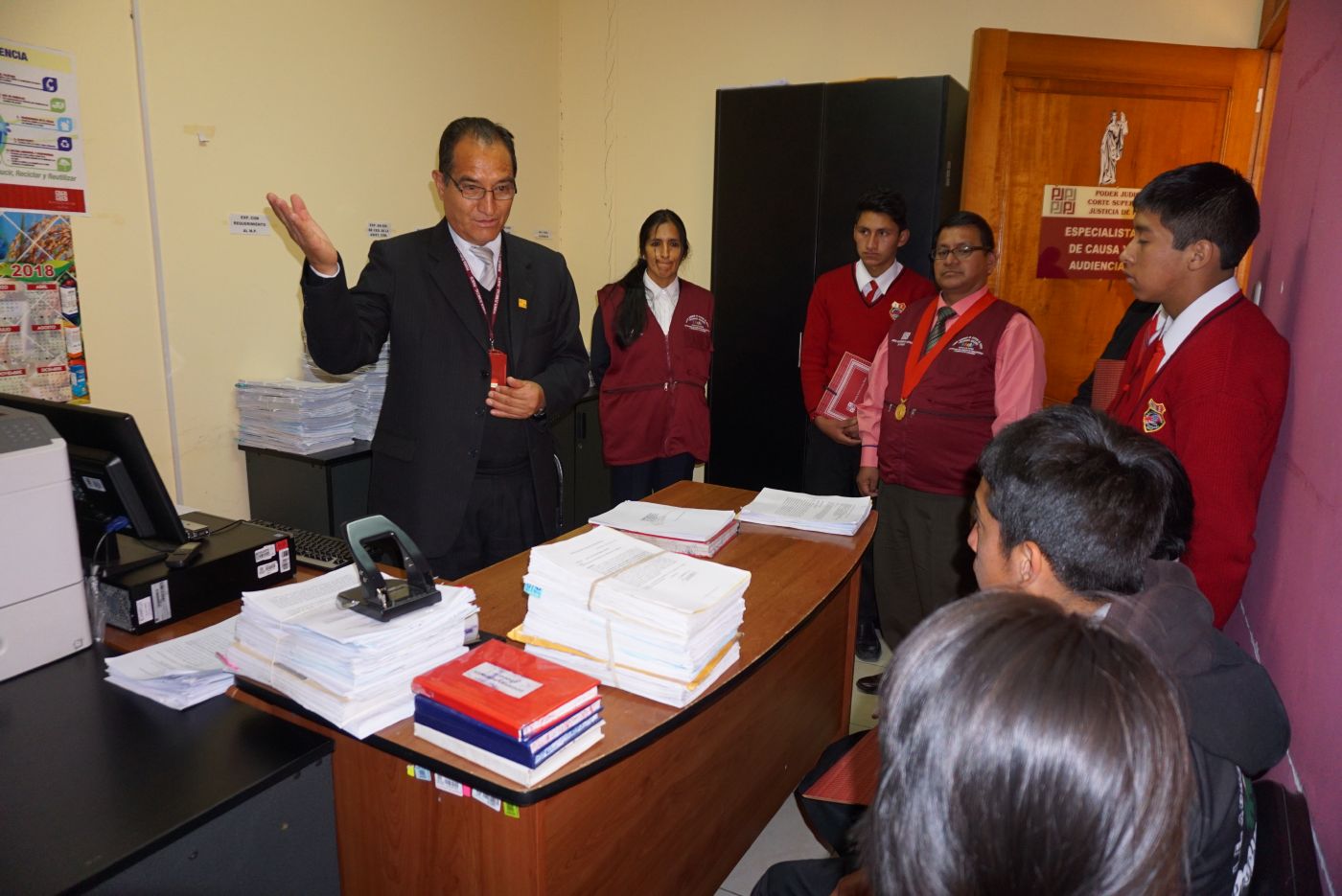 El Dr. Antonio Paucar Lino, Presidente de la Corte Superior de Justicia, lideró la visita, orientando a los estudiantes como es el trámite de los diversos procesos que se desarrollan en los juzgados.