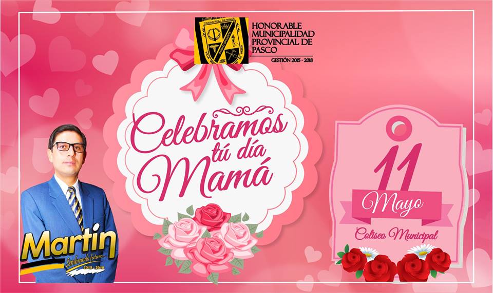 Con motivo de celebrarse el segundo domingo de mayo el Día de la Madre y dedicar un tiempo a mostrar el profundo agradecimiento que sentimos o expresar nuestro amor y cariño, para hacer que se sientan especiales en su día. La Honorable Municipalidad Provincial de Pasco, realizará una serie de actividades, con la finalidad de homenajear a todas las madres pasqueñas.