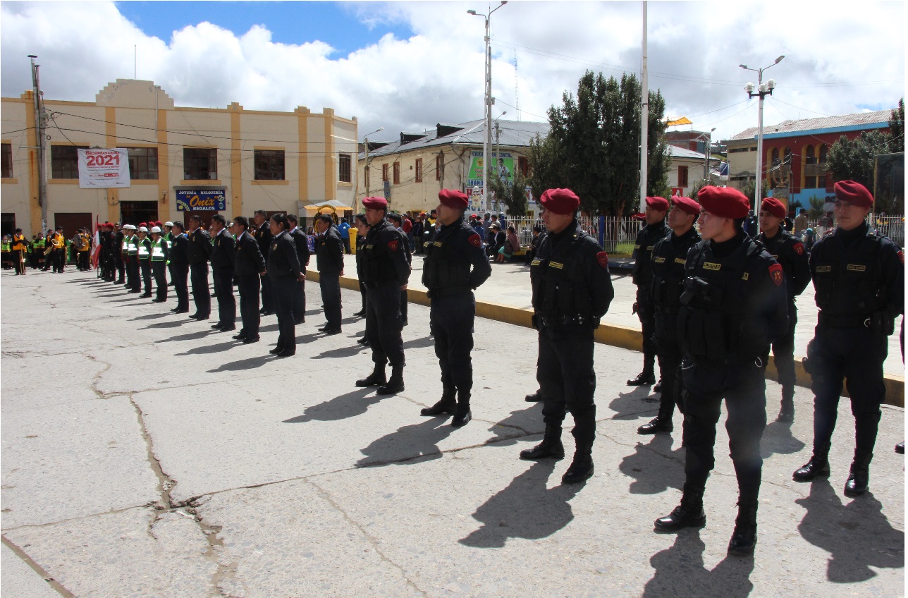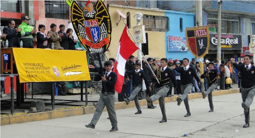 El acto se inició con el izamiento del Pabellón Nacional y la entonación de las sagradas notas del Himno Nacional de Perú. Posteriormente se realizó el discurso alusivo a la Policía Escolar a cargo del representante de la Policía Nacional del Perú – Pasco y finalmente la Juramentación de los Brigadieres y Policías Escolares.
