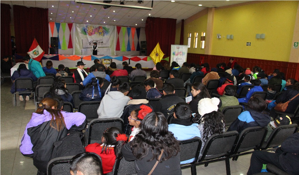 Alumnos participantes de los tres niveles educativos se presentaron ante la población que se dio cita en el auditórium de la comuna provincial, donde se desarrolló el final del concurso de declamación poética y cuenta cuentos, organizada por la Honorable Municipalidad Provincial de Pasco, docentes de las diversas instituciones educativas y población estuvieron atentos al desempeño que pusieron cada uno de los competidores.