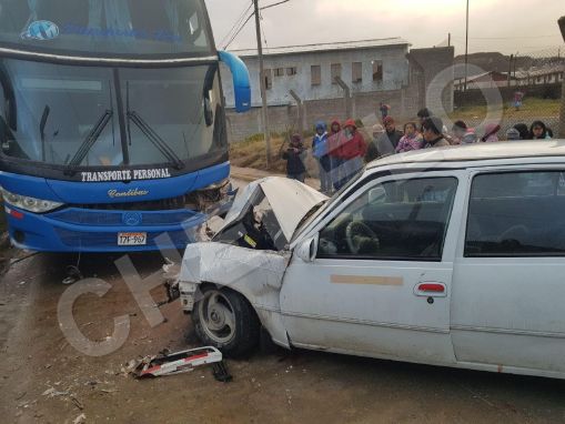 SORPRESIVO CHOQUE ENTRE AUTO Y ÓMNIBUS EN PARAGSHA DEJA 4 PERSONAS HERIDAS QUE FUERON TRASLADADO AL HOSPITAL CARRIÓN