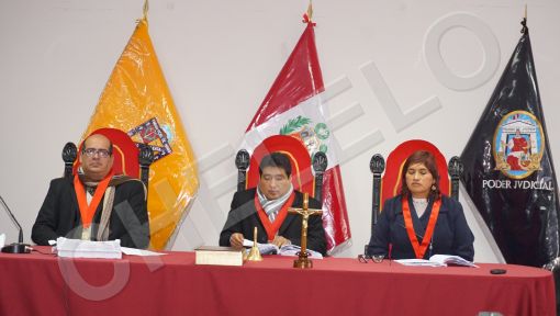 El Colegiado conformado por los Jueces, Héctor Martin Uriol Olortegui, Enriqueta Jáuregui Dextre y Ronald Illatopa Machuca, viene desarrollando las audiencias, con la presencia de los representantes del Ministerio Público, Defensa Publica y defensa privada.