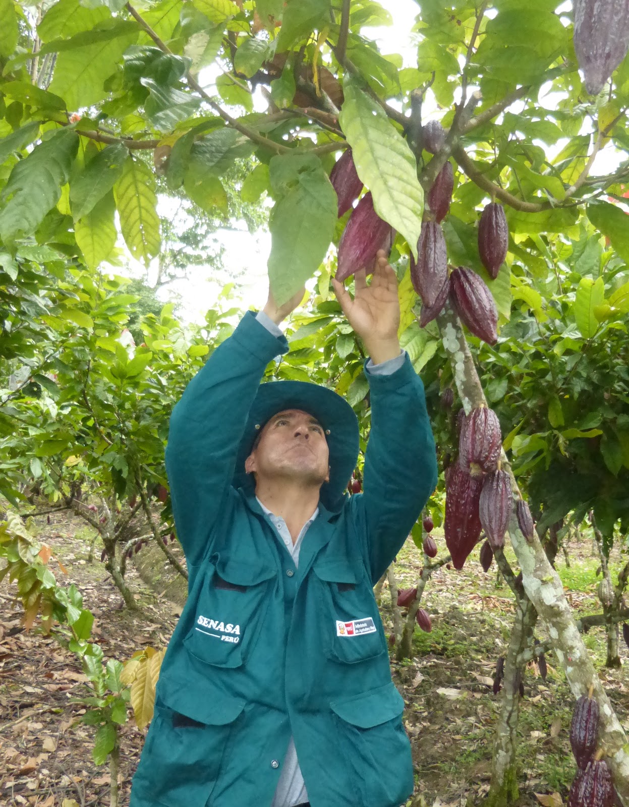 Las plagas del cacao son favorecidas por factores climáticos, como alta humedad y temperatura, y principalmente el abandono de los cultivos en épocas de precios bajos del producto. Sin embargo, las familias del campo guiadas por el SENASA han logrado reducir el impacto de plagas, comprobándose que los campos de productores que aplican el Manejo Integrado de Plagas (MIP) tienen infestaciones menores al 1.5%.
