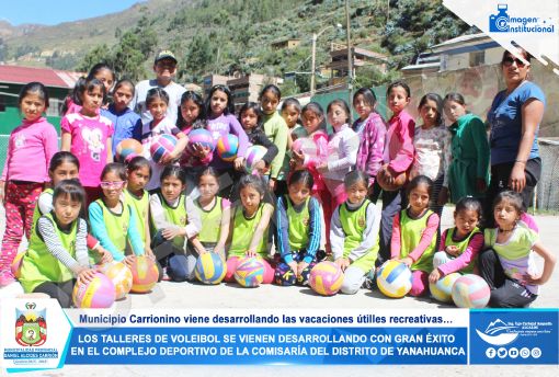 El taller de voleibol se vienen desarrollando con gran éxito en el complejo deportivo de la comisaría del Distrito de Yanahuanca, programa Municipal que promueve el buen uso del tiempo libre mediante un aprendizaje con entretenimiento.