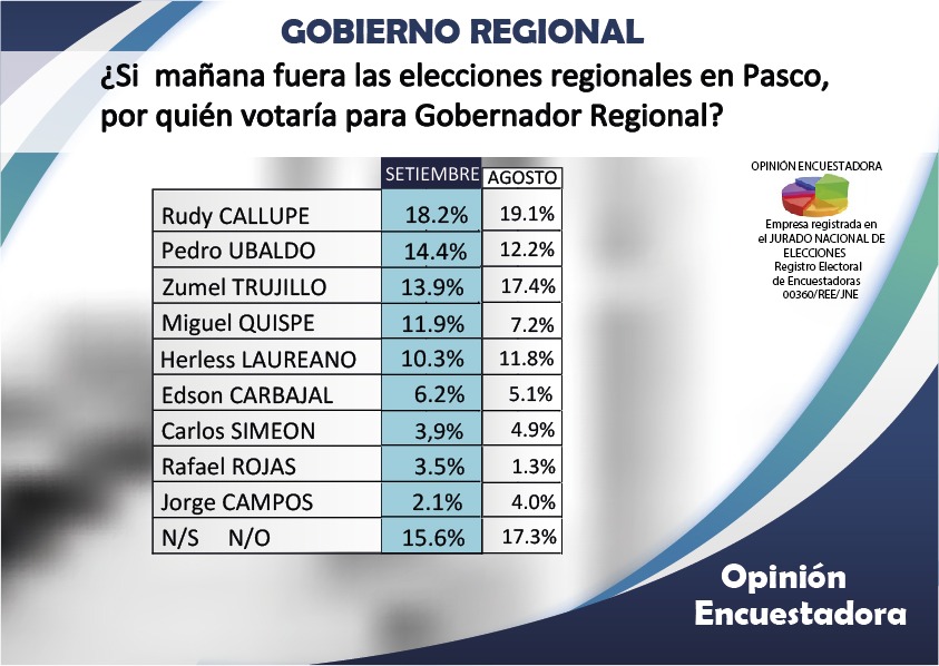 Ya habiendo cumplido con la entrega en el norte y sur, ahora hacemos entrega del trabajo en las regiones del centro del país como JUNIN, PASCO Y HUANUCO en donde se pudo conocer a diferencia de nuestra última entrega hace más de tres meses ya la aceptación de candidatos habilitados y reconocidos por el JURADO NACIONAL DE ELECCIONES, teniendo como plus el haber estado ya trabajando en las diversas regiones y sus provincias con mayor posibilidad de tentar y lograr el tan ansiado objetivo.